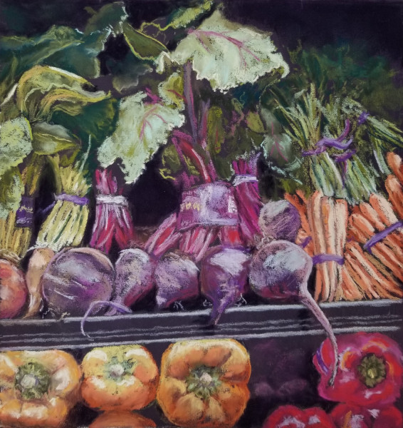 When my family and I moved to Duxbury Massachusetts from Chicago, I was stunned by the beauty that abounds here. I would like to inspire local residents to marvel at the colors all around them that they might take for granted, whether it be an old mailbox, shadows on the beach, or a cranberry harvest in progress. My chosen medium is soft pastel on 400 grit sanded paper although I’ve worked in watercolor and acrylic.